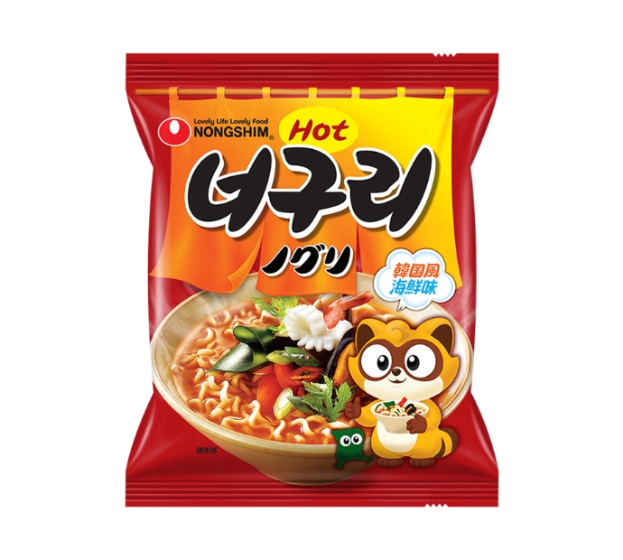 油揚げめん(小麦粉、でん粉、植物油脂、食塩、シーフードペースト)、唐辛子調味油(菜種油、米糠油、その他)、糖類、味付大豆蛋白、味付シーフードフレーク、ムール貝調味パウダー、香辛料、海鮮ベース粉末、魚肉練り製品、醤油粉末、いか風味粉末、昆布、人参、酵母調味粉末、わかめ、煮干調味粉末、食塩、加工でん粉、調味料(核酸等)、増粘多糖類、酸化防止剤(ビタミンE、緑茶抽出物)、かんすい、香辛料抽出物、乳化剤、カラメル色素、酸味料、ビタミンB1、ナイアシン、鉄、ビタミンB2、葉酸、(原材料の一部に小麦、大豆、えび、いか、かに)