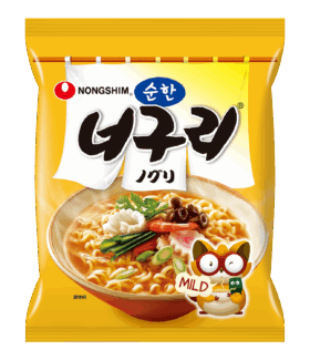 コシのある太麺で、もちもちとした食感とうどんのような食べ応えが特徴的な海鮮ベースのラーメン。「ノグリ」は韓国語で「たぬき」のことで、丸くて太い麺の形がたぬきを連想させるということで名付けられました。実は辛ラーメンよりも長い歴史を誇るロングセラー製品で、辛いながらもスッキリとした味の「ノグリラーメン(HOT)」や、辛さ抑えめの「ノグリラーメン(MILD)」をはじめとした複数のラインナップを展開しています。