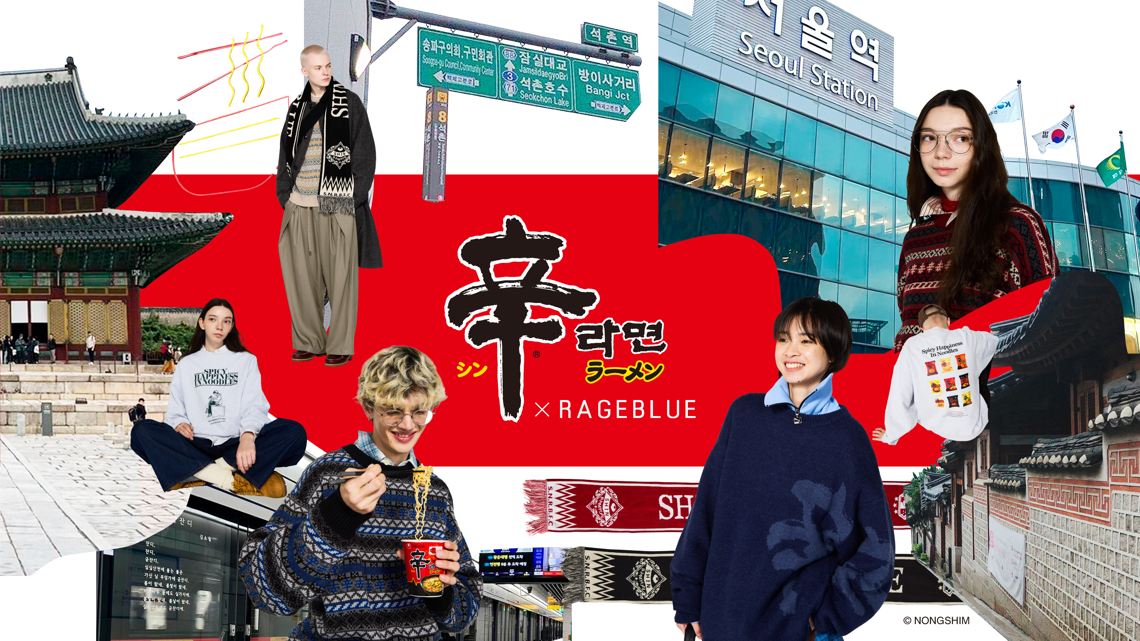 株式会社農心ジャパン(本社:東京都千代田区、代表取締役社長:金大廈)は、世界100 カ国以上で販売中のグローバルブランド「辛ラーメン」と、株式会社アダストリア(本部:東京都渋谷区、代表取締役社長:北村 嘉輝)の展開するアパレルブランド「RAGEBLUE(レイジブルー)」とのコラボレーションアイテム(全5 型)を開発しました。昨年大好評だった「ノグリラーメン×RAGEBLUE」に続く、コラボ第2 弾となる今回のアイテムは、2025 年10 月31 日(金)より、「RAGEBLUE」の全店舗と、and ST ストアの一部店舗、公式WEB ストア and ST(アンドエスティ)、ZOZOTOWNよりご購入いただけます。