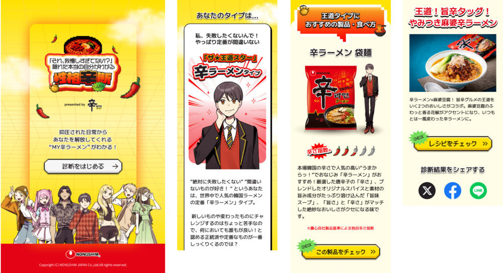 「性格辛断(診断)」ページ:https://www.nongshim.co.jp/brand/shinramenkaiwai/shindan.html