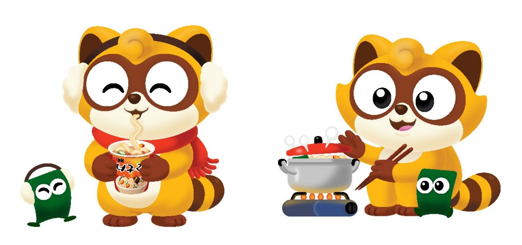 韓国語で「たぬき」を意味する「ノグリ」くんは、温かい感性を持ち、ラーメンに対する強い職人魂を持っているキャラクター。情熱にあふれる一方、ときには人生の憂いに浸る感傷的な一面もあります。