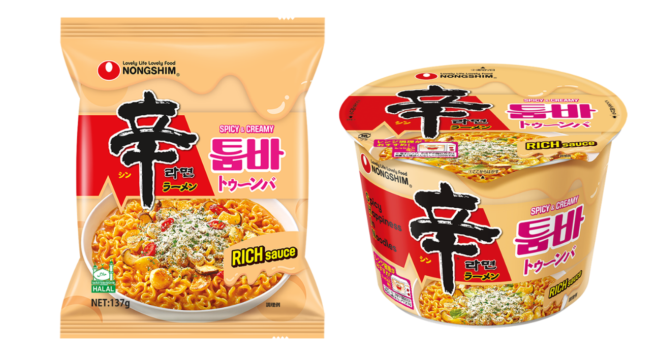 ブース正面で大きな存在感を放つのが、「辛ラーメン トゥーンバ」。SNSで流行した「辛ラーメンをクリームパスタ風にアレンジする」という、モディシューマーのレシピを公式に製品化したものです。『日経トレンディ 2025年ヒット商品ベスト30』にも選出されるなど、今最も勢いのある製品の魅力をご紹介します。