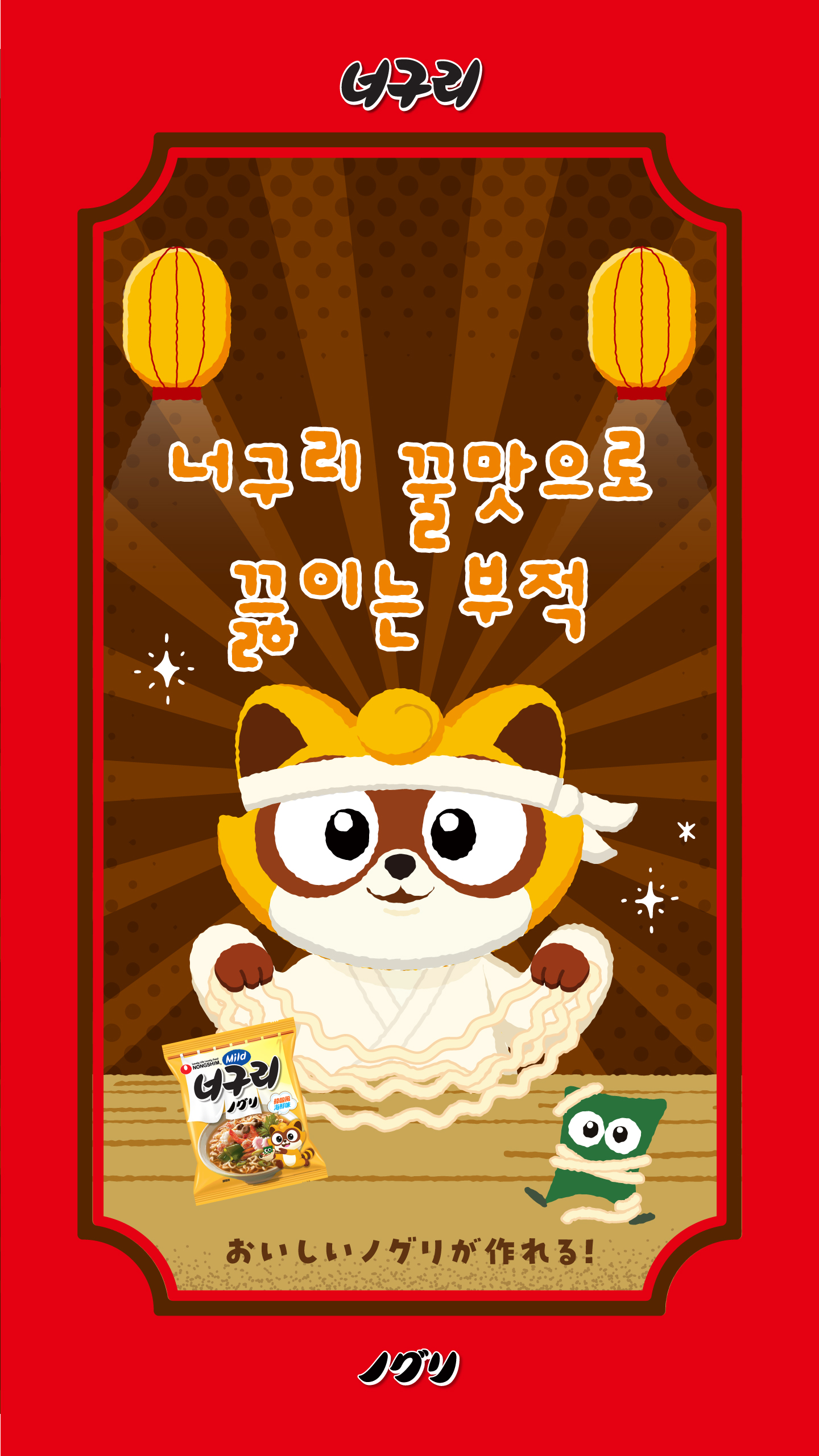 逆さまに陳列されていたパッケージの너구리(ノグリ)の文字を見て、欧米圏で「RtA」にしか読めないと話題になったんだ!だから、ロゴを逆さまにした「ノグリRtA」パッケージもつくっちゃった!