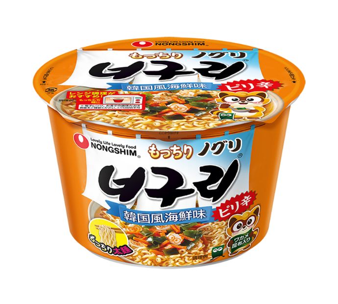 油揚げめん(小麦粉、でん粉、植物油脂、食塩、シーフードペースト)、唐辛子調味油(菜種油、米糠油、その他)、糖類、味付大豆蛋白、味付シーフードフレーク、ムール貝調味パウダー、香辛料、海鮮ベース粉末、魚肉練り製品、醤油粉末、いか風味粉末、昆布、人参、酵母調味粉末、わかめ、煮干調味粉末、食塩、加工でん粉、調味料(核酸等)、増粘多糖類、酸化防止剤(ビタミンE、緑茶抽出物)、かんすい、香辛料抽出物、乳化剤、カラメル色素、酸味料、ビタミンB1、ナイアシン、鉄、ビタミンB2、葉酸、(原材料の一部に小麦、大豆、えび、いか、かに)